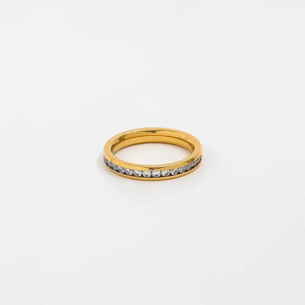 The Freya Ring features a continuous band of clear stones set within a slim gold frame. Perfect for stacking or wearing solo, it adds a subtle shimmer to your everyday style.